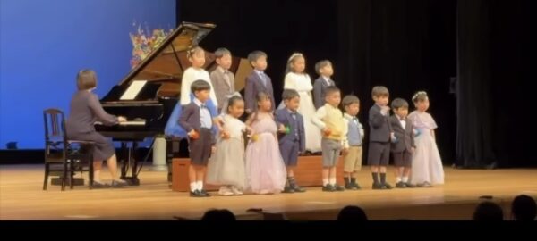 私は「おんがく」チームとして、リズム・即興・身体活動・歌唱などの基礎を学ぶレッスンで子どもたちをステージに乗せていただきました。春は、不安そうだった年少さん、学年があがりしっかりしてきた年中さん、そして最高学年としてリーダーシップをとる頼もしい年長さんとともに元気な楽曲で歌唱、ベル演奏、ピアノ連弾、ソロ、合唱奏をご披露しました。温かな客席の空間で、ちょっぴり緊張しながらもやり遂げた子どもたち!がんばりました!ラストフィナーレ「はばたけ!こどもたち」もステージいっぱい音楽を通して、お家のみなさんに感謝を伝えることができました♪